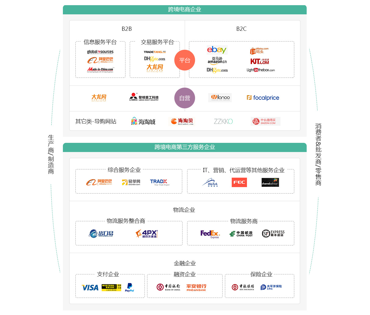 接与第三方综合服务平台合作,让第三方综合服务平台代办物流、通关商检等一系列环节从而完成整个跨境电商交易的过程。跨境电商