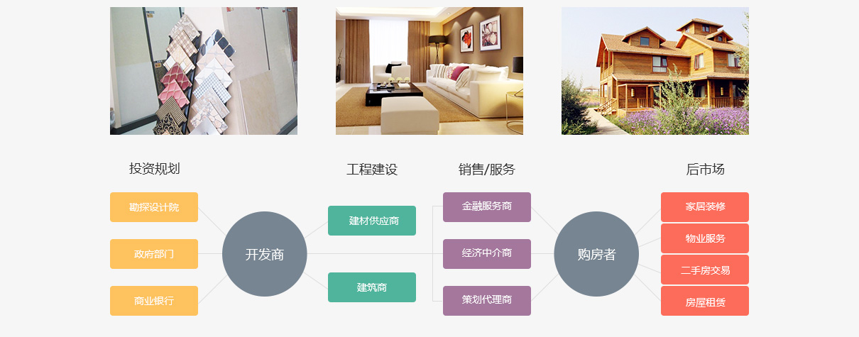 发流程相关、与住房建设、住房配套和住房服务等相关的牵连产业;服务产业链立足房地产存量市场