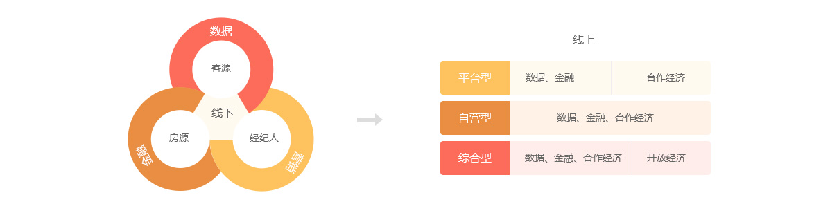 房地产交易O2O的基本特征:线上(虚)提供房屋、客户的数据服务以及营销服务、衍生的金融服务或其他服务,线下(实)提供撮合交易服务